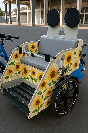 Leonie - so heisst unsere dritte, mit dem Crowdfunding-Projekt “Lokalhelden” der Raiffeisen finanzierte Rikscha - hat nun schon einige Ausfahrten hinter sich. Anerkanntermassen gehört sie nicht zu den schönsten Fahrzeugen, die auf St.Gallens Strassen verkehren ;-). Wie kann dem abgeholfen werden? Mit Künstlicher Intelligenz? Rolando Zahner hat sich mit Hilfe der KI ein paar Verschönerungs-Entwürfe liefern lassen.